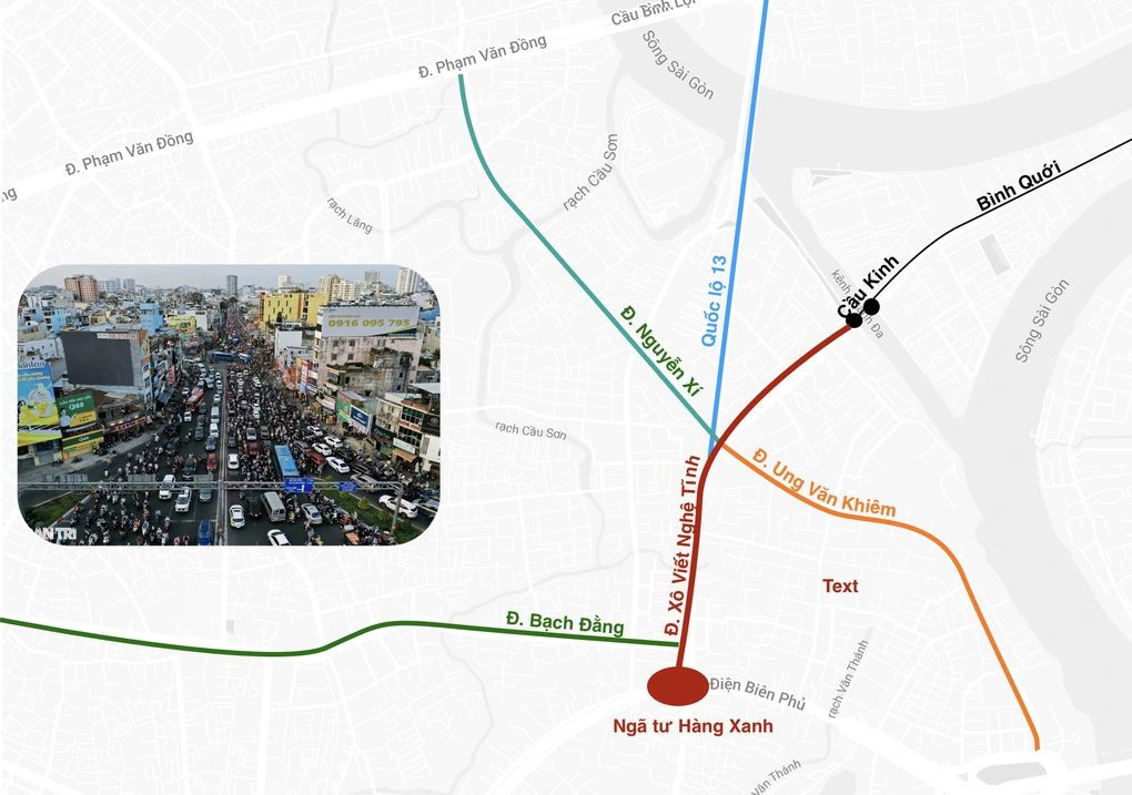 Đặc biệt là có nhiều điểm xung đột tại các giao lộ giữa đường Xô Viết Nghệ Tĩnh và các đường khác như Bạch Đằng, D5, hẻm 549, dẫn đến dòng xe ùn ứ kéo dài.